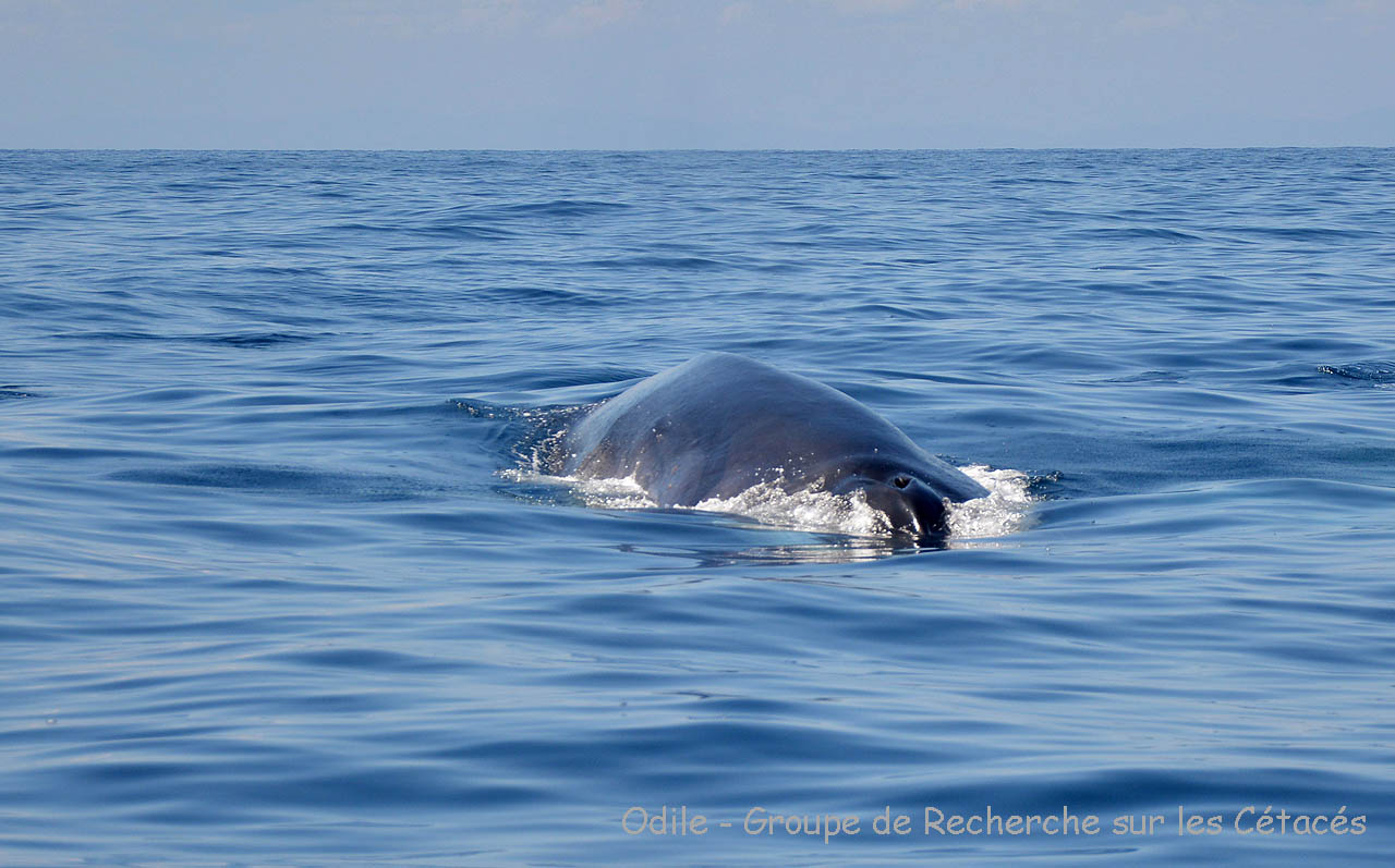 La première semaine ayant livré son content de cachalot et dauphins, nous décidons de porter notre attention plus au large, au pays des rorquals, malgré la mer assez houleuse. Bien nous en prend, car arrivés dans la zone frontale ligure nous ne tardons pas à détecter un grand souffle, suivi de plusieurs autres : nous nous trouvons en présence de 3 à 4 Rorquals communs, étalés sur plusieurs kilomètres.