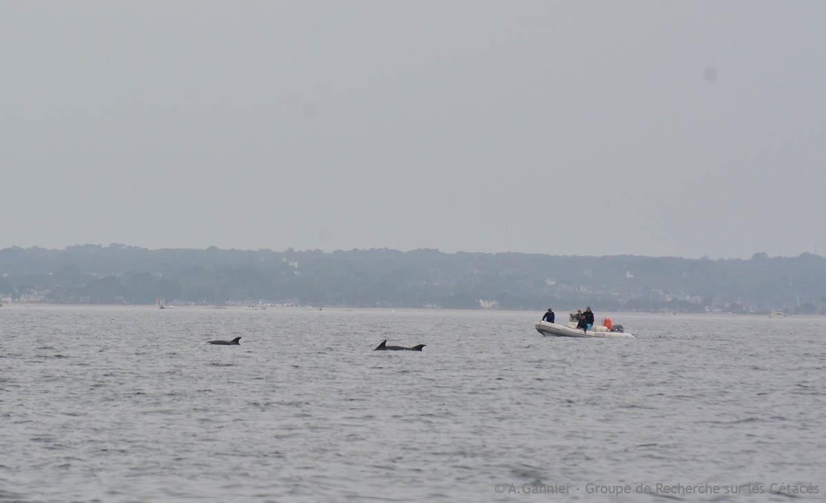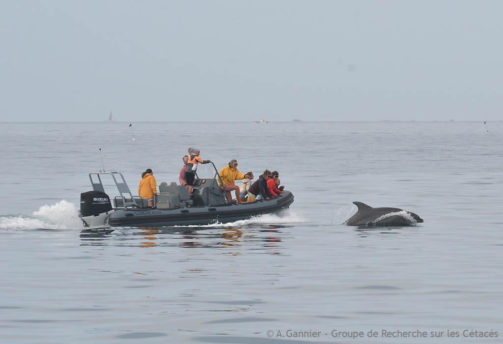 Mais les semi-rigides ont la capacité de nuire gravement à la tranquillité des dauphins et des marsouins s’ils sont conduits par des personnes ignorant des lois, ne sachant pas les interpréter, ou ne voulant pas les appliquer. Nous en avons eu deux exemples alors que nous étions en train de photo-identifier un groupe de Tursiops cet été (en respectant le code de bonne conduite Pelagos).