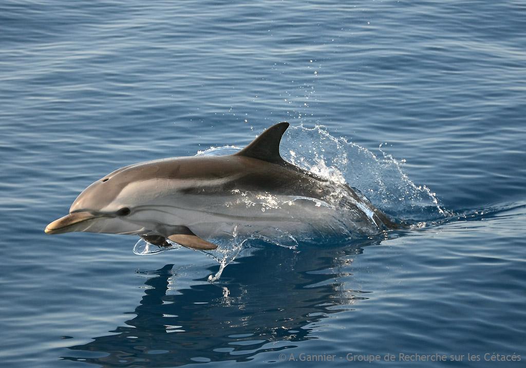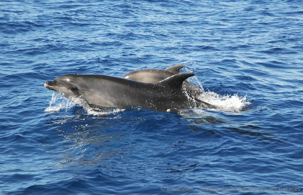 C’est un dauphin d’assez petite taille (2 mètres), abondant à l’échelle de la planète et de la Méditerranée. Généralement, il préfère plutôt les eaux profondes du large… mais ses habitudes sont en fait assez côtières en région azuréenne, en raison des profonds canyons qui se prolongent localement jusqu’à quelques centaines de mètres de la côte, et qui lui fournissent un biotope riche en nourriture.