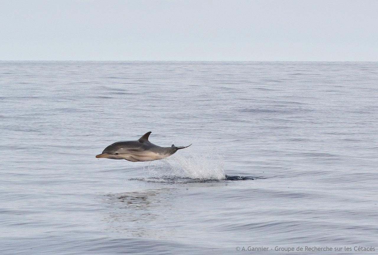 Malgré ces précautions, les dauphins rejoignent le canot à deux reprises ; même à plus de 100 mètres, nous sommes en effet un pôle d’attraction pour des individus en phase de repos et de socialisation. Surtout qu’il y a dans le groupe un bon nombre de subadultes, visiblement occupés à jouer en ce milieu d’après-midi. Tout ceci est soigneusement consigné, contribuant à renforcer nos données sur les interactions entre dauphins et bateaux.