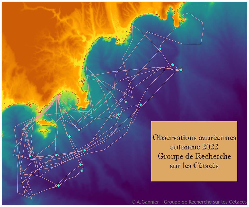 Grâce à un début d’automne particulièrement clément, le Groupe de Recherche sur les Cétacés a pu concentrer ses observations sur les dauphins bleus et blancs de la région azuréenne, une population en danger de régression ces dernières décennies. Le bateau à moteur Wanaka, l’application PADOC, un hydrophone calibré et même un drone ont été mis à contribution pour réaliser 15 observations, la plupart du temps de longue durée car focalisées sur l’activité des dauphins.