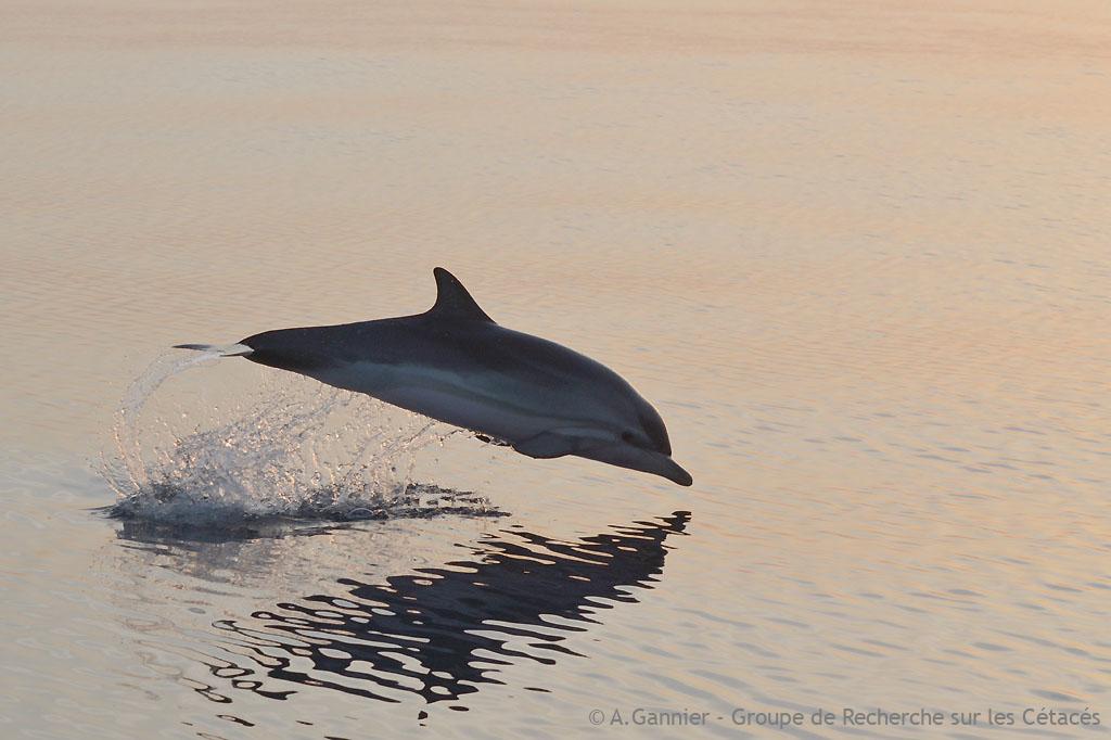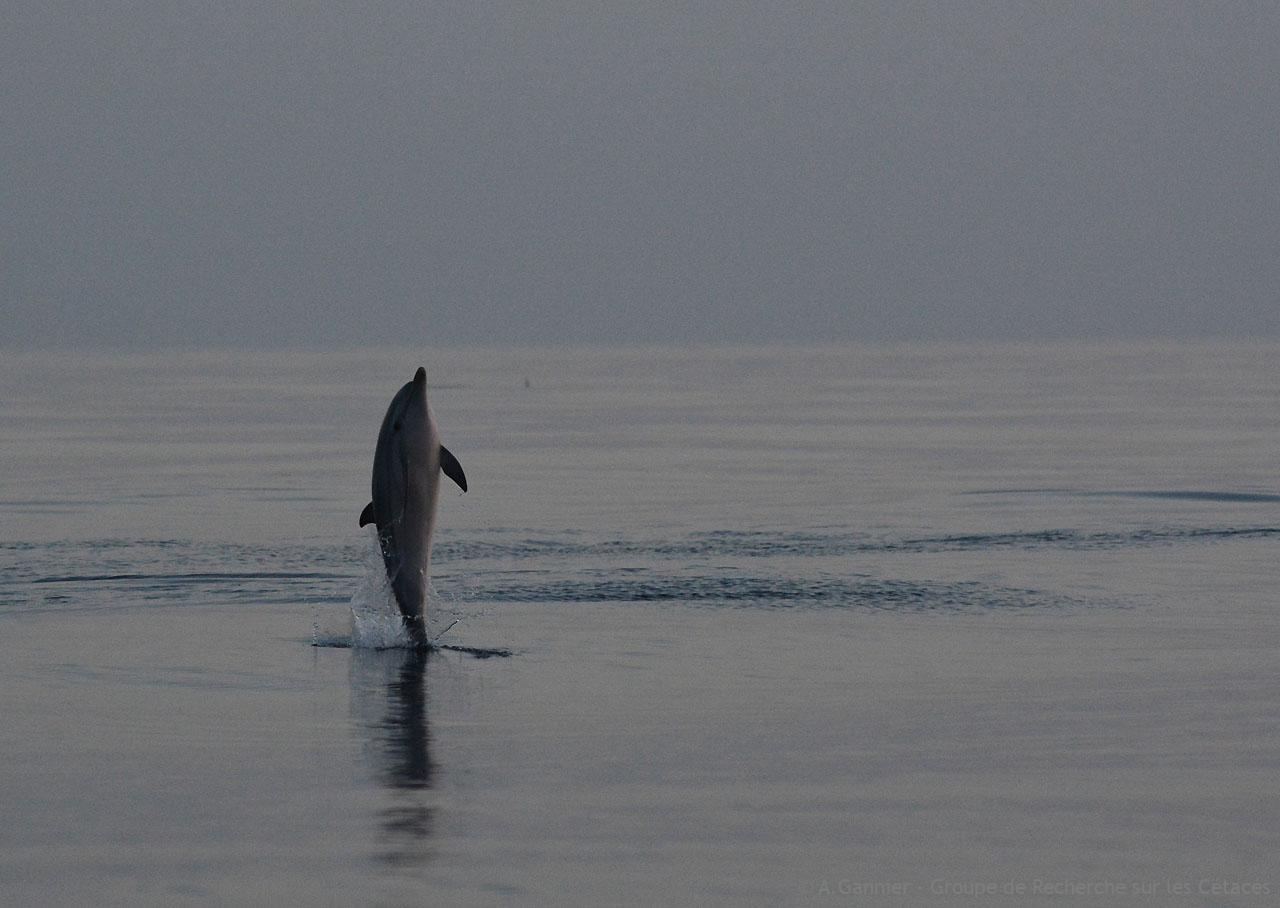 Nous avons bien observé la structure en sous-groupes, qui se dispersent progressivement au fur et à mesure que la nuit approche, avec une intensification de l’écholocalisation. Autre fait marquant de cet automne, l’observation de nourrissons de quelques mois qui commencent à se nourrir en effectuant des courtes sondes. Un élément qui va de paire avec un constat récent des autopsies réalisées sur des bébés échoués : des restes alimentaires sont trouvés dans les estomacs mélangés avec du lait maternel.