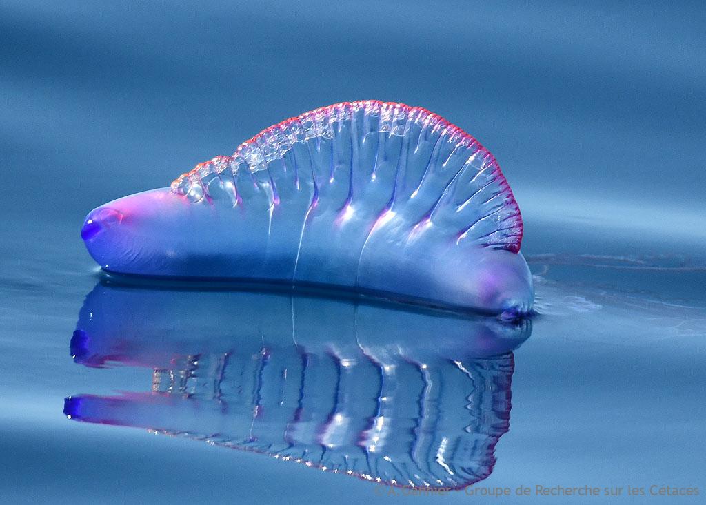 Nos navigations naturalistes nous amènent à observer des cétacés en région basque, des cétacés, mais pas que… l’organisme animal le plus visible en surface est la « méduse » Physalie (Physalia physalis).