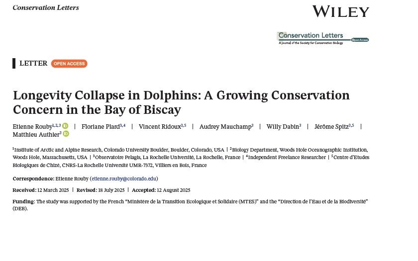 Si le sujet n’était pas aussi grave, on annoncerait la nouvelle ‘saison’ d’une série incontournable, celle qui met en scène les dauphins et les pêcheurs du golfe de Gascogne, avec en toile de fond l’exploitation des ressources de cette région. Un article scientifique tout juste paru, dont le premier auteur est Etienne Rouby, constitue le premier épisode de cette nouvelle saison ; il est intitulé ‘Longevity collapse in dolphins: a growing conservation concern in the bay of Biscay’.