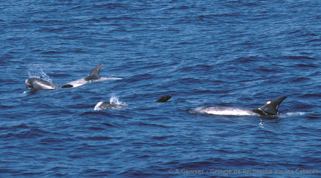 D’autre part, l’emprise humaine rapidement croissante sur les 15 kilomètres les plus côtiers (trafic de plaisance motorisée, bruit, …) a forcément un effet sur les espèces qui fréquentent le plus ce milieu proche : le Grand dauphin et le Dauphin bleu et blanc, ainsi que le Dauphin de Risso.