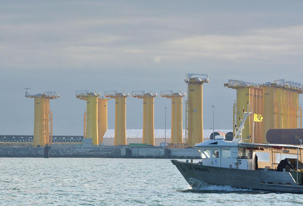 Enfin, un autre domaine de préoccupation est l’industrialisation du golfe de Gascogne, avec l’installation de parcs éoliens offshore qui s’accélère. Nous pouvons voir, sur le port de La Rochelle, les fondations (pièces de transition, plus exactement) des éoliennes destinées au parc offshore de St-Nazaire. A moyen terme, plus de 1000 éoliennes seront installées dans le nord du golfe de Gascogne. Elles fourniront de l’électricité quand il y aura du vent. Et quand il n’y aura pas de vent, comment fera-t-on pour avoir du courant ? (*)
