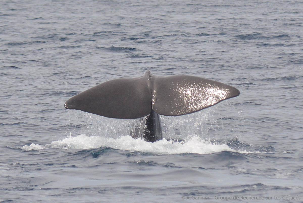 En matière de grosses bêtes, nous avons pu étudier quelques Cachalots, occupés comme de juste à se nourrir sur le talus provençal. Il s’agissait a priori de mâles subadultes (un groupe de quatre) et adultes, vus notamment au large de Marseille. Ils n’ont pas entendu parler de l’arrivée de la flamme. Nous non plus.