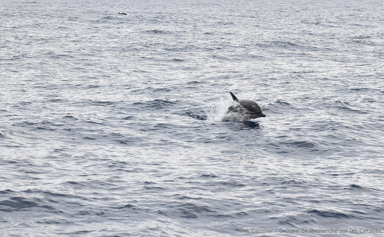 La première semaine ayant livré son content de cachalot et dauphins, nous décidons de porter notre attention plus au large, au pays des rorquals, malgré la mer assez houleuse. Bien nous en prend, car arrivés dans la zone frontale ligure nous ne tardons pas à détecter un grand souffle, suivi de plusieurs autres : nous nous trouvons en présence de 3 à 4 Rorquals communs, étalés sur plusieurs kilomètres.