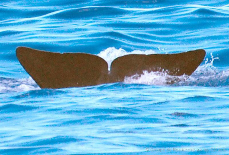 Ainsi, les photos nous ont permis d’obtenir avec d’autres auteurs une première évaluation de la population de cachalots en Méditerranée occidentale : entre 200 et 1000 individus (voir le résumé ici ou nous demander une copie de la publication).