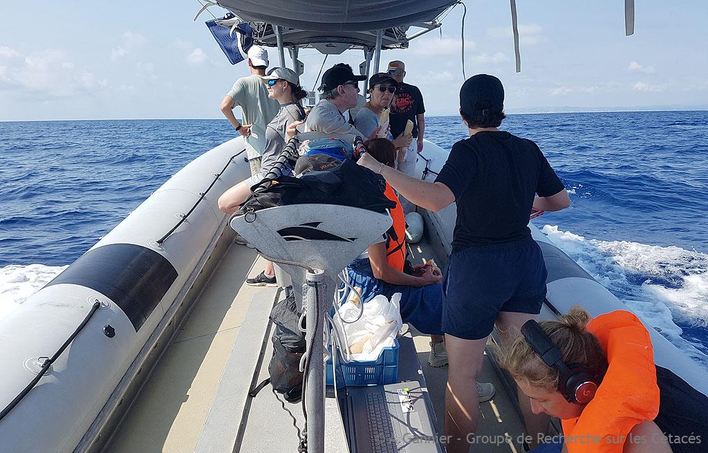 Si les deux sorties en mer n’ont pas été très prolifiques, une simple demi-journée suffit pour comprendre ce que signifie ‘protocole de prospection’ : on n’est pas à bord d’un bateau d’écotourisme. En pratique, passer 4 heures pour apercevoir, ou pas, un petit groupe de dauphins, ce n’est pas une sinécure : il faut sans arrêt chercher, observer, consigner les informations.